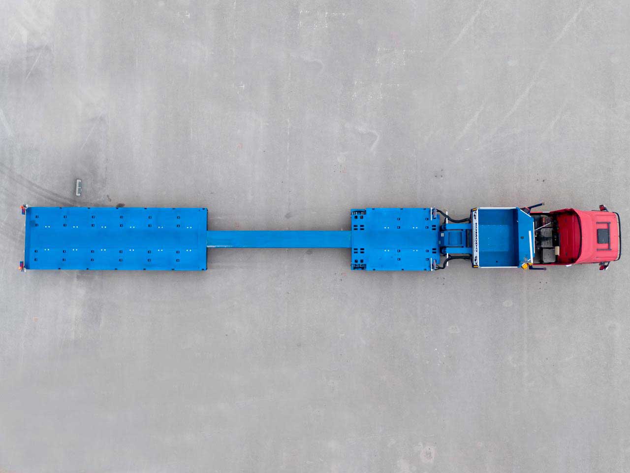 Specialized chassis for the transportation of long and oversized cargo, which is equipped with a sliding section that allows you to increase the useful length of the loading surface directly at the loading site or on the road. The structure is made of high-quality steel with an anti-corrosion coating, which guarantees durability and resistance to climatic influences. The extension system is realized by means of hydraulic or mechanical guides, which ensure smooth and reliable opening of the section without significant effort for the operator.