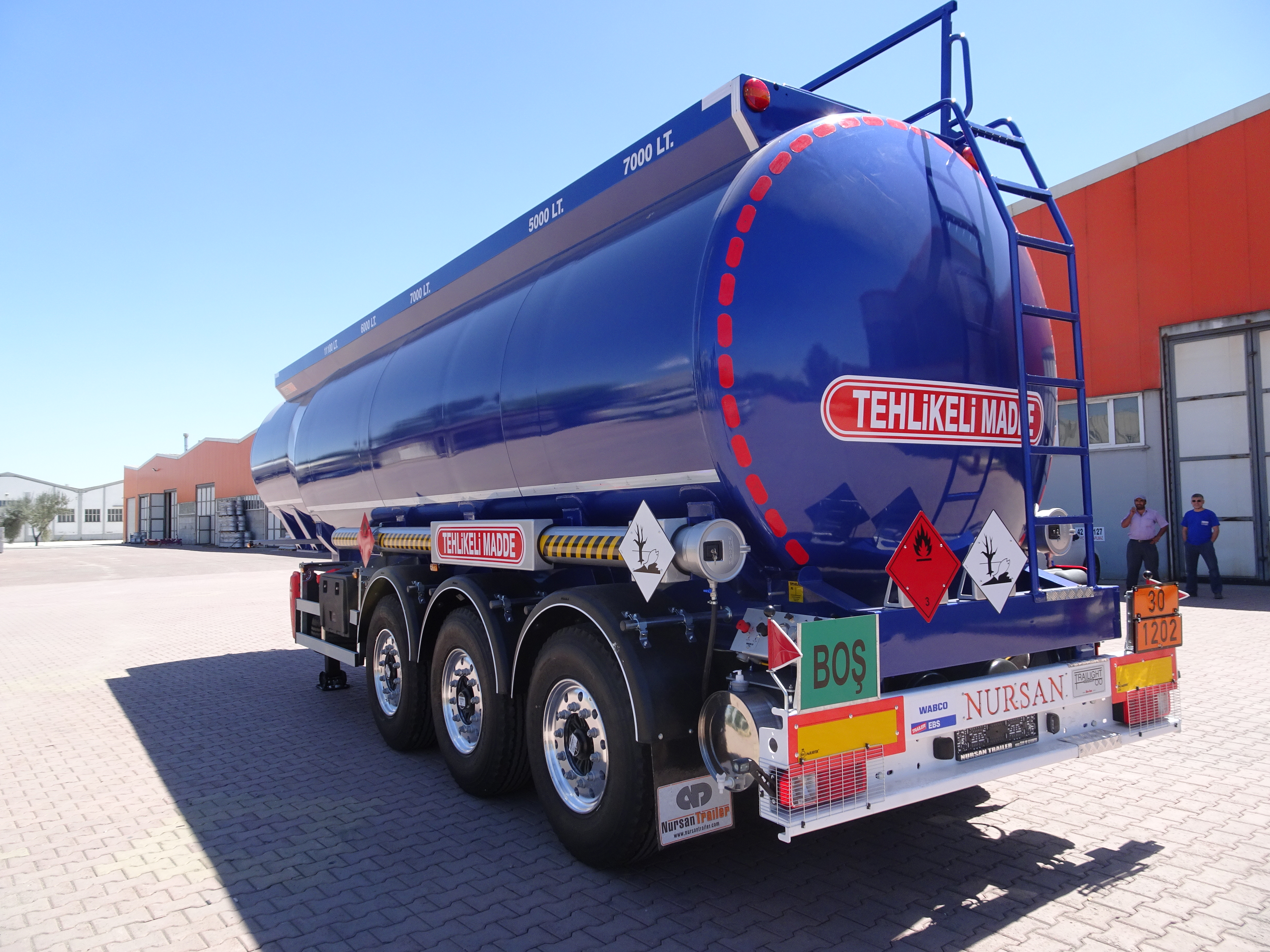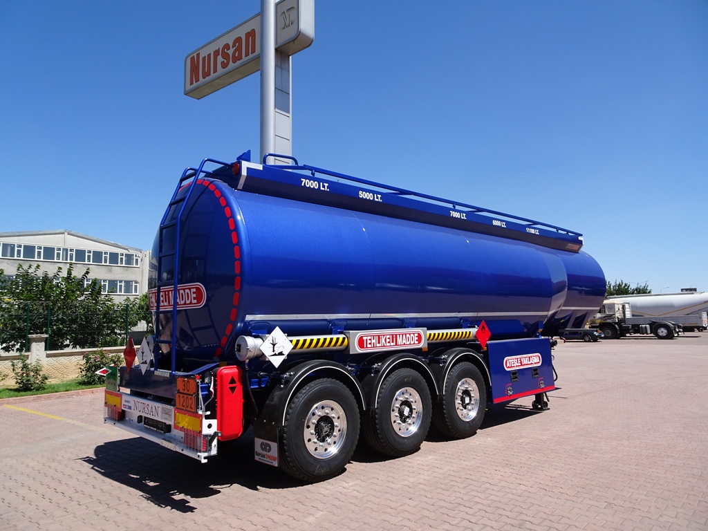 Стальные полуприцепы турецкой компании Nursan изготавливаются из лигированной стали толщиной 3-4 мм. Выбор данного материала заключается в том, чтобы увеличить жесткость конструкции и позволить эксплуатировать данные бензовозы в условиях относительного бездорожья.